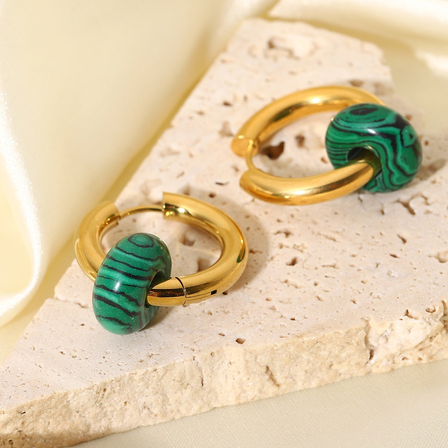 Our charm hoop earrings are as green as Bali's ricefields. A little touch of green malachite in your collection is a must-have! Transport yourself into the most beautiful landscape with the Imani pair.