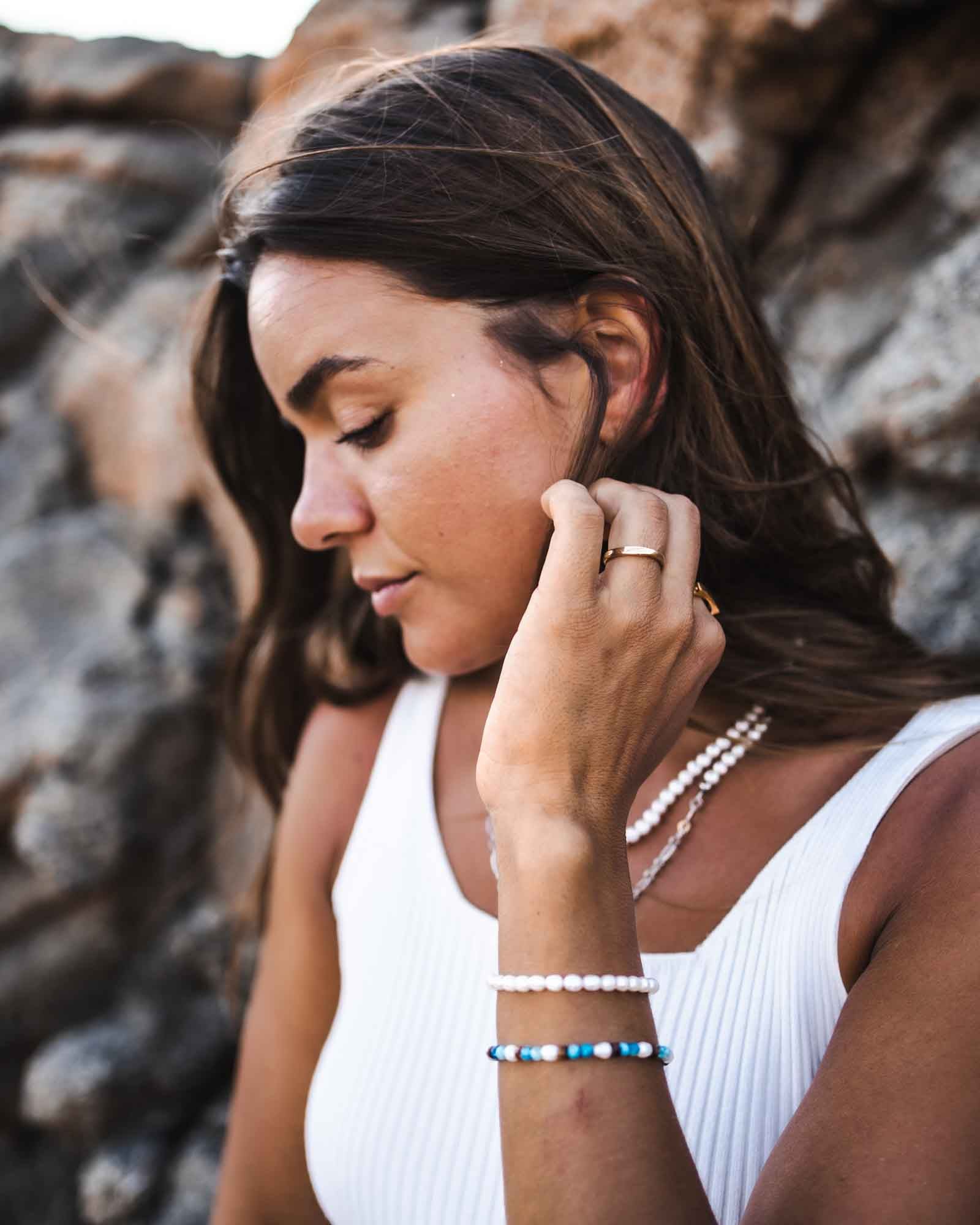 Known as the Land of Happiness, Bahia served as inspiration for the creation of this bracelet of natural stones and pearls. The white sandy beaches with the blue sea of the state of Bahia are the main pillars in the design of this bracelet. Safe clasp in stainless steel. Wear it alone or combine it with other Dicci accessories. Get to know our pearl accessories as well.