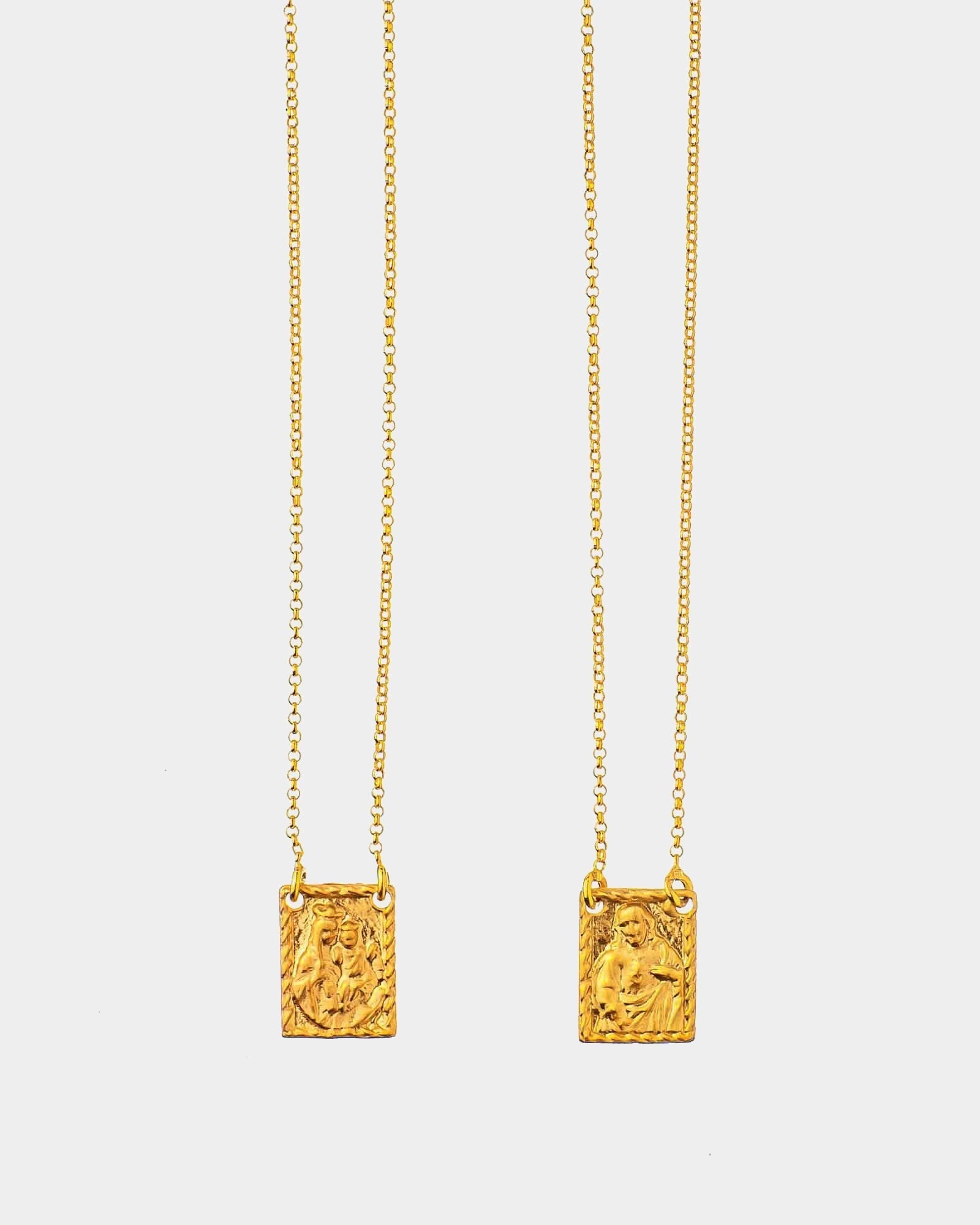 Golden 925 silver scapular with image of Our Lady of Carmel and Jesus. An accessory for your daily life. An amulet that suits your style! Combine it with another necklace for an even bolder look.