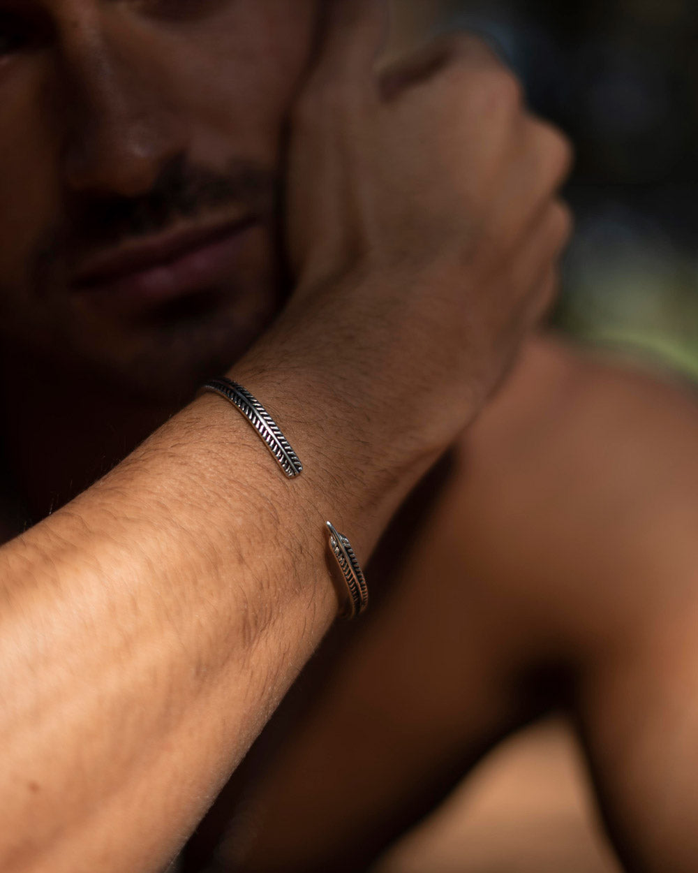 The Feather Cuff Bracelet features a delicate feather design that wraps around your wrist, adding a touch of elegance and sophistication to any outfit. The detailing of the feather creates a textured and dimensional look, making it stand out from other bracelets. With its adjustable design, this bracelet will fit most wrist sizes comfortably, ensuring a perfect fit every time. The stainless steel construction ensures that this bracelet is resistant to tarnishing and scratching, so you can wear it for years to come. Wear it alone or combine it with other bracelets for a more irreverent look.