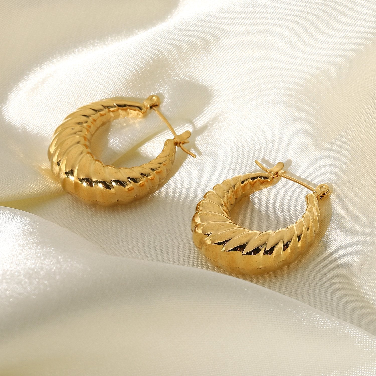 • Sublime and modest shrimp earrings. This pair will bring a calming tone to any look. Well secured and easy to wear, it is an ideal lust have to tone down your outfits without making them boring or dull.
