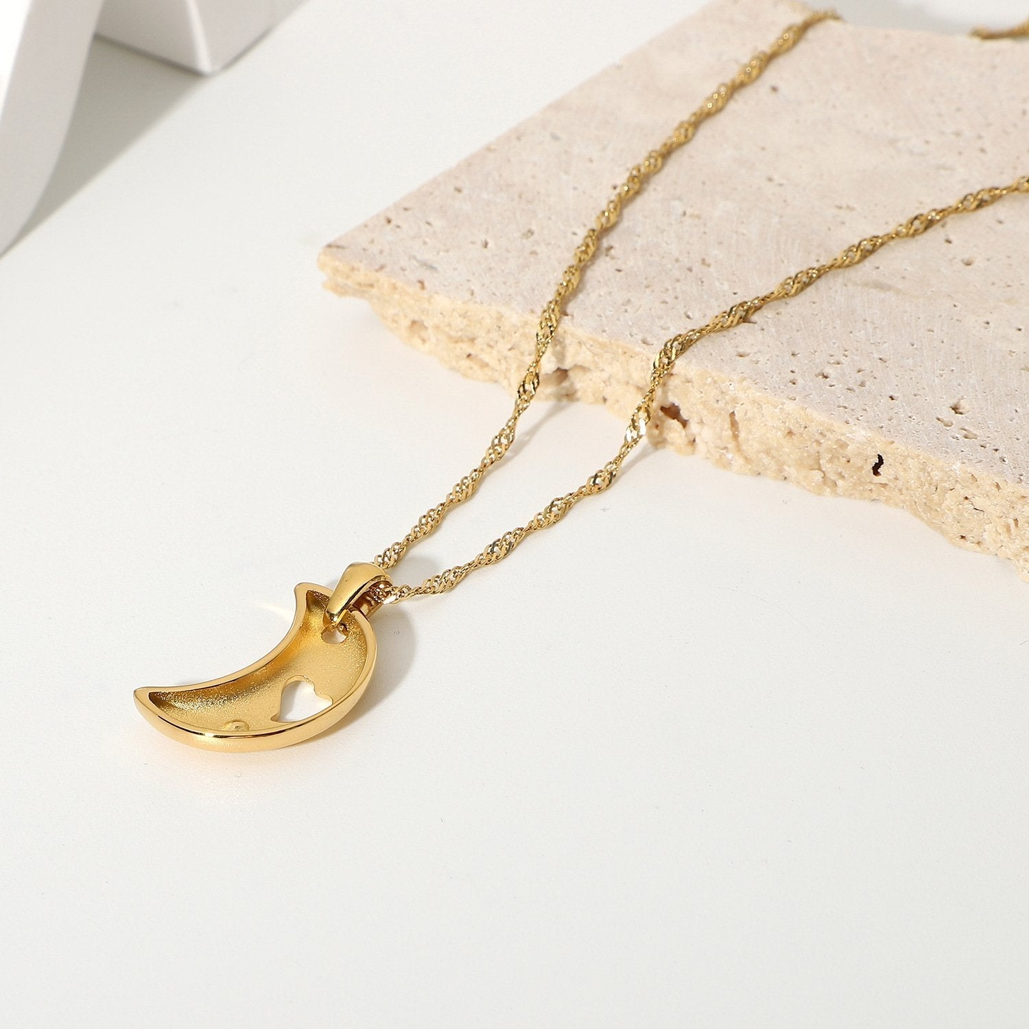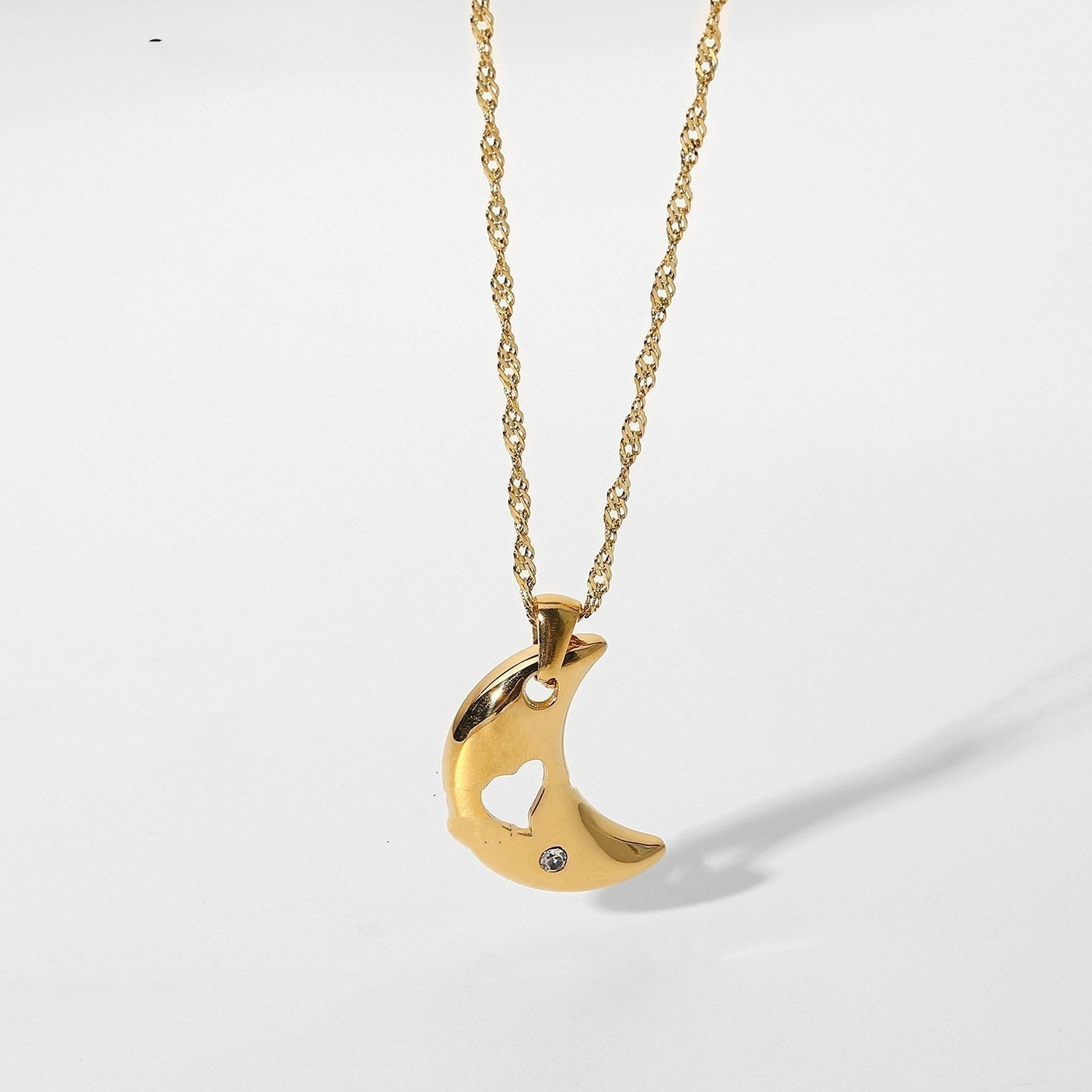 • Create a girly vibe with this breathtaking moon necklace. The single mooon shape creates a focal point with love flavor . Simple enough to wear to work for a polished look , or to pair with some sandals and skirt for ome spring vibes.