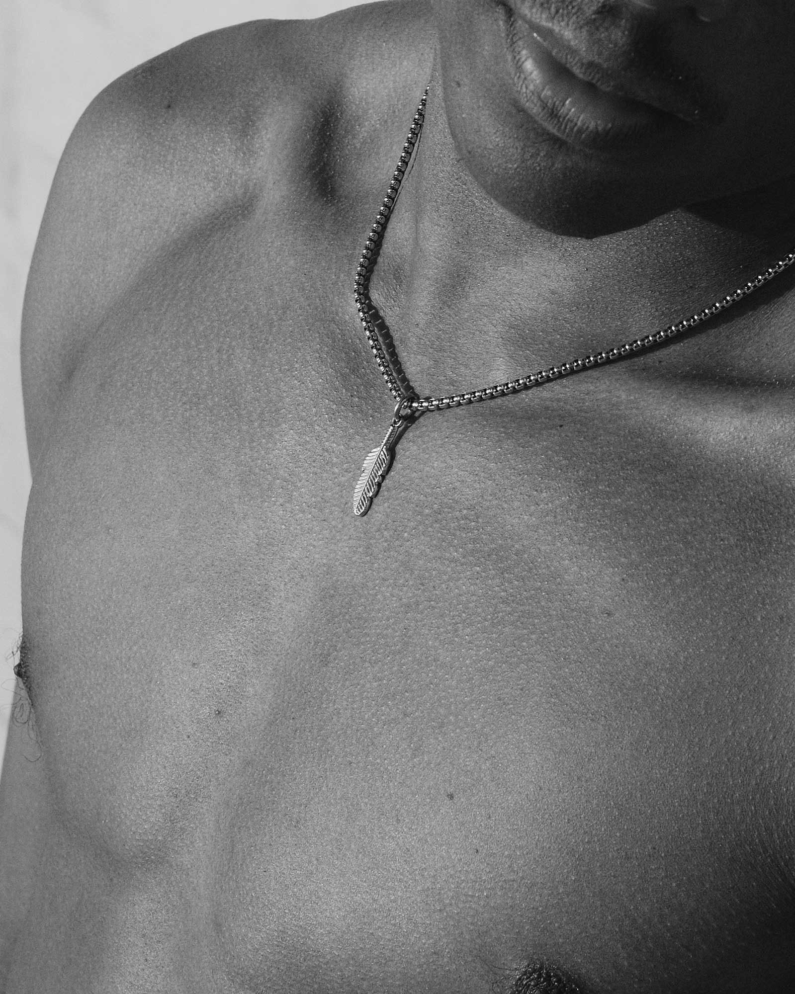 The plume pendant hangs from ou Kauai chain made of high-quality, tarnish-resistant stainless steel, ensuring it will last for years to come. Whether you're dressing up for a special occasion or simply adding some extra shine to your everyday look, this necklace is sure to turn heads. Lightweight and easy to wear, it won't weigh you down or irritate your skin, even after hours of wear. Wear it alone or combine it with other necklaces or even our matching plume earring.