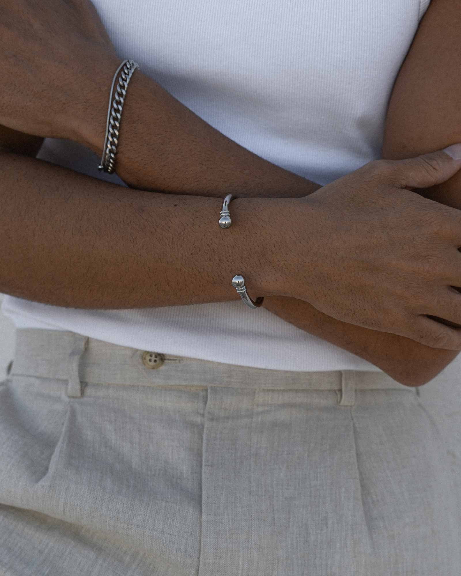 Our bold cuff bracelet designed for who is always on the move. Made from high-quality stainless steel, this statement piece is the perfect addition to any adventurer's wardrobe. The thick and sturdy design exudes strength and confidence, while the polished stainless steel finish adds a touch of sophistication to your look. Whether you're exploring new places or just running errands around town, this cuff bracelet is the perfect accessory to complement your adventurous spirit.