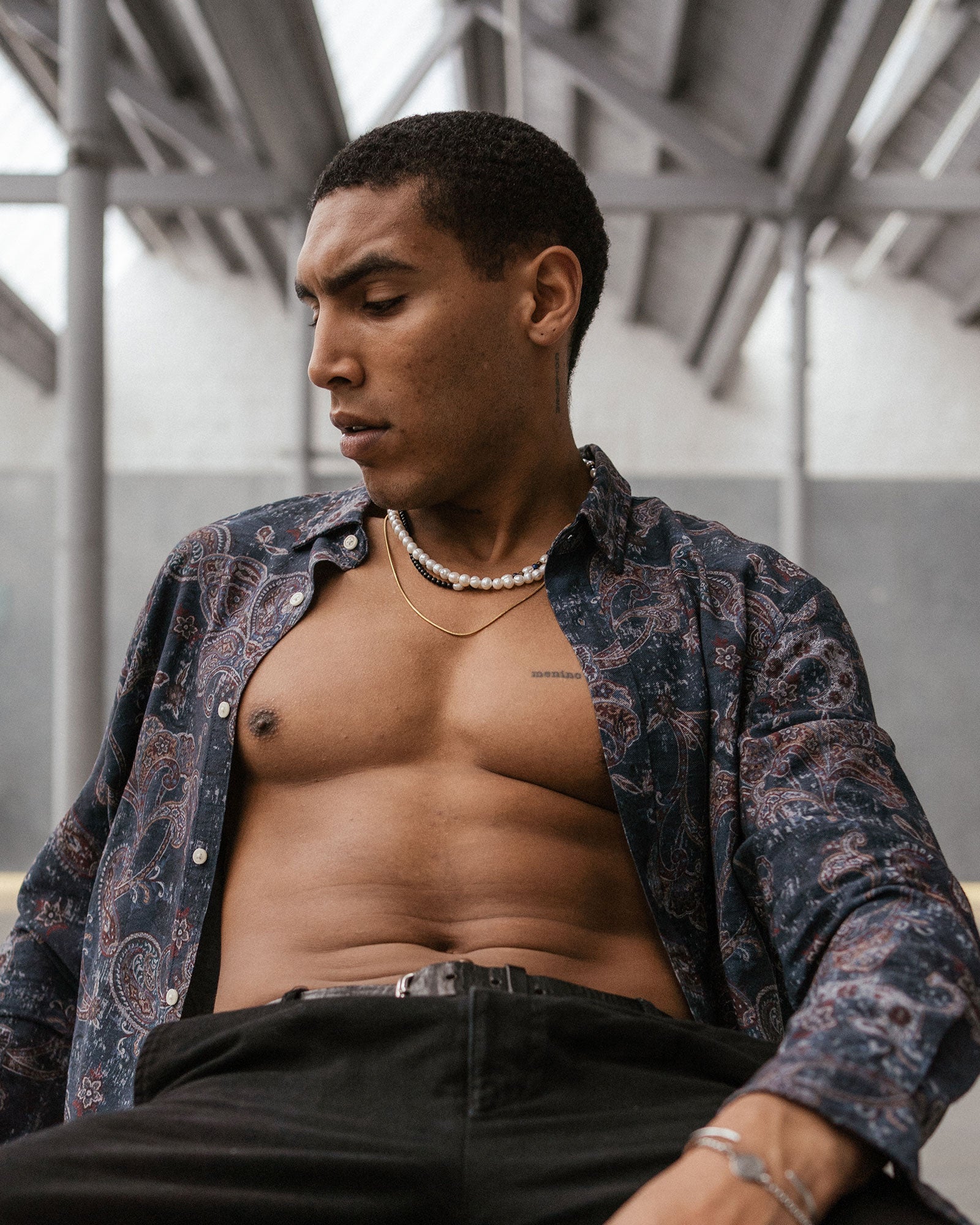 White pearl necklace. A unisex necklace so irreverent that it will make you look amazing regardless of the rest of your look. Yes, even with your favorite tracksuit this necklace will give your style an upgrade. Wear it alone or pair it with a necklace for an even bolder look.